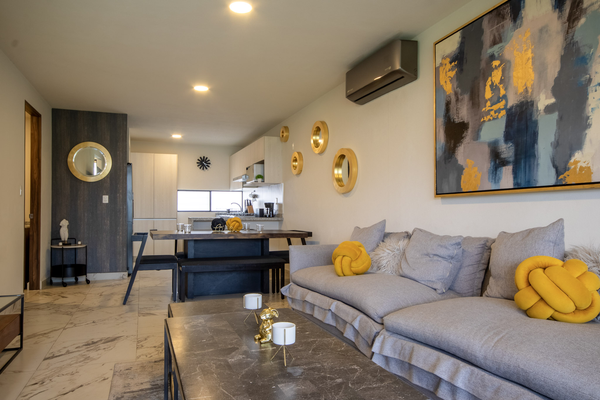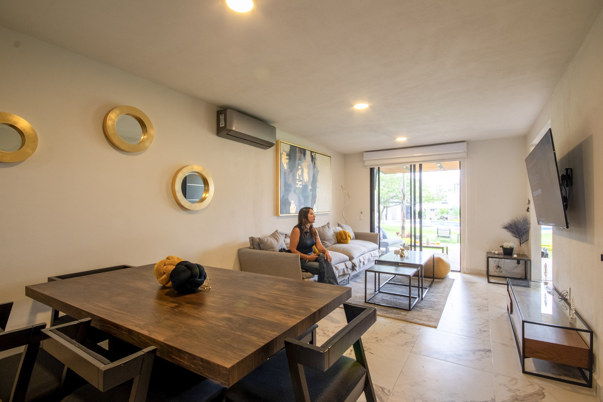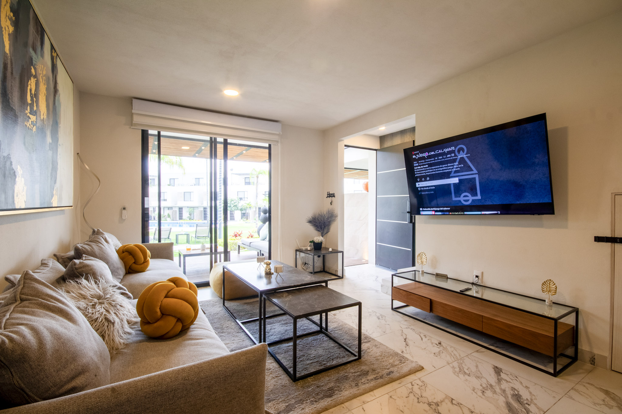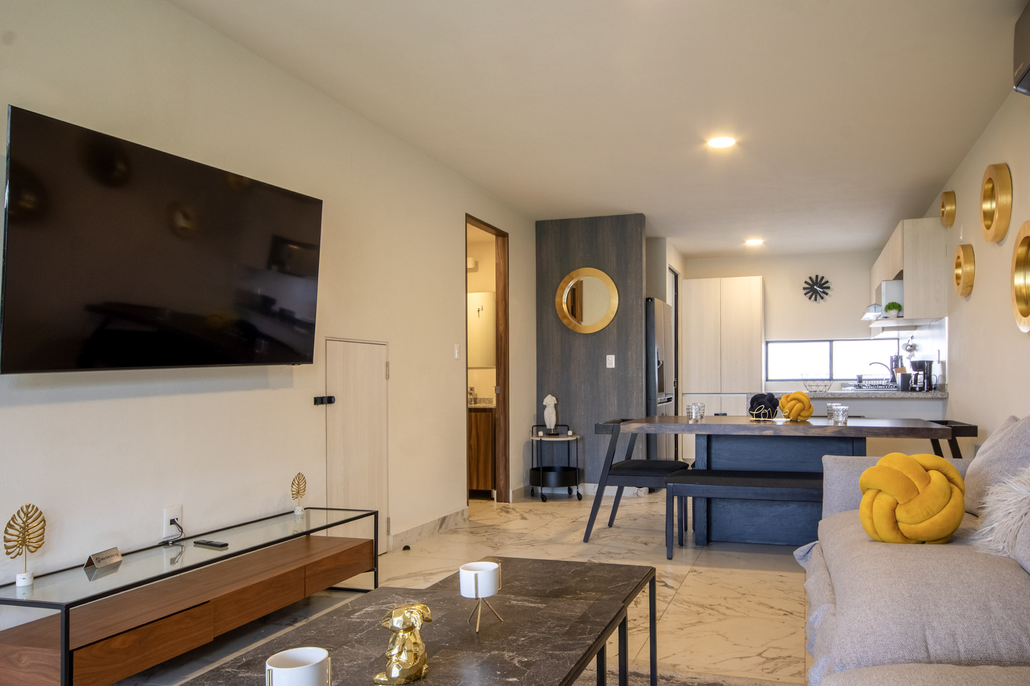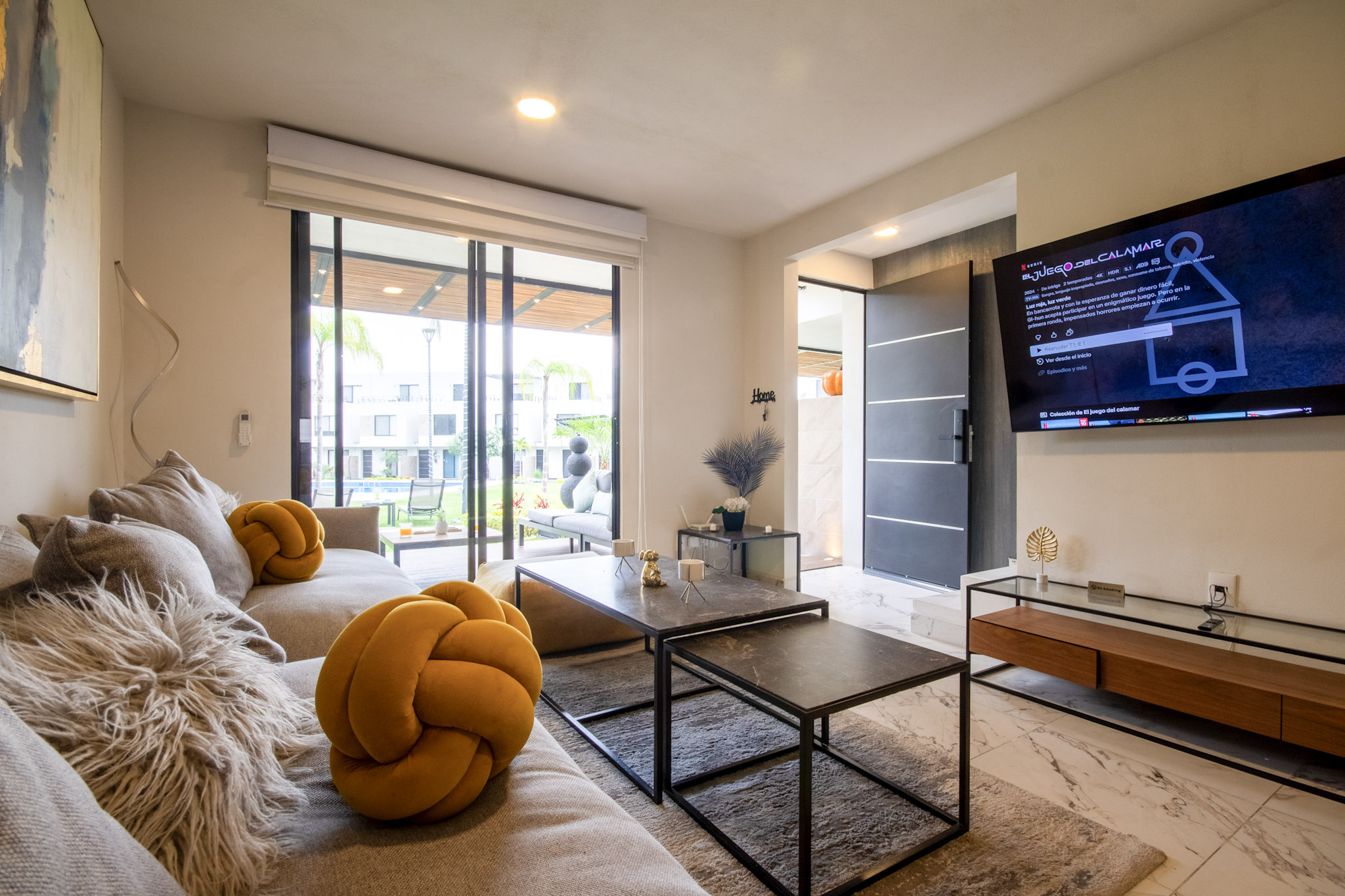 Sala: 1 Smart Tv, juego de 2 sillones para 6 personas con mesa de centro.