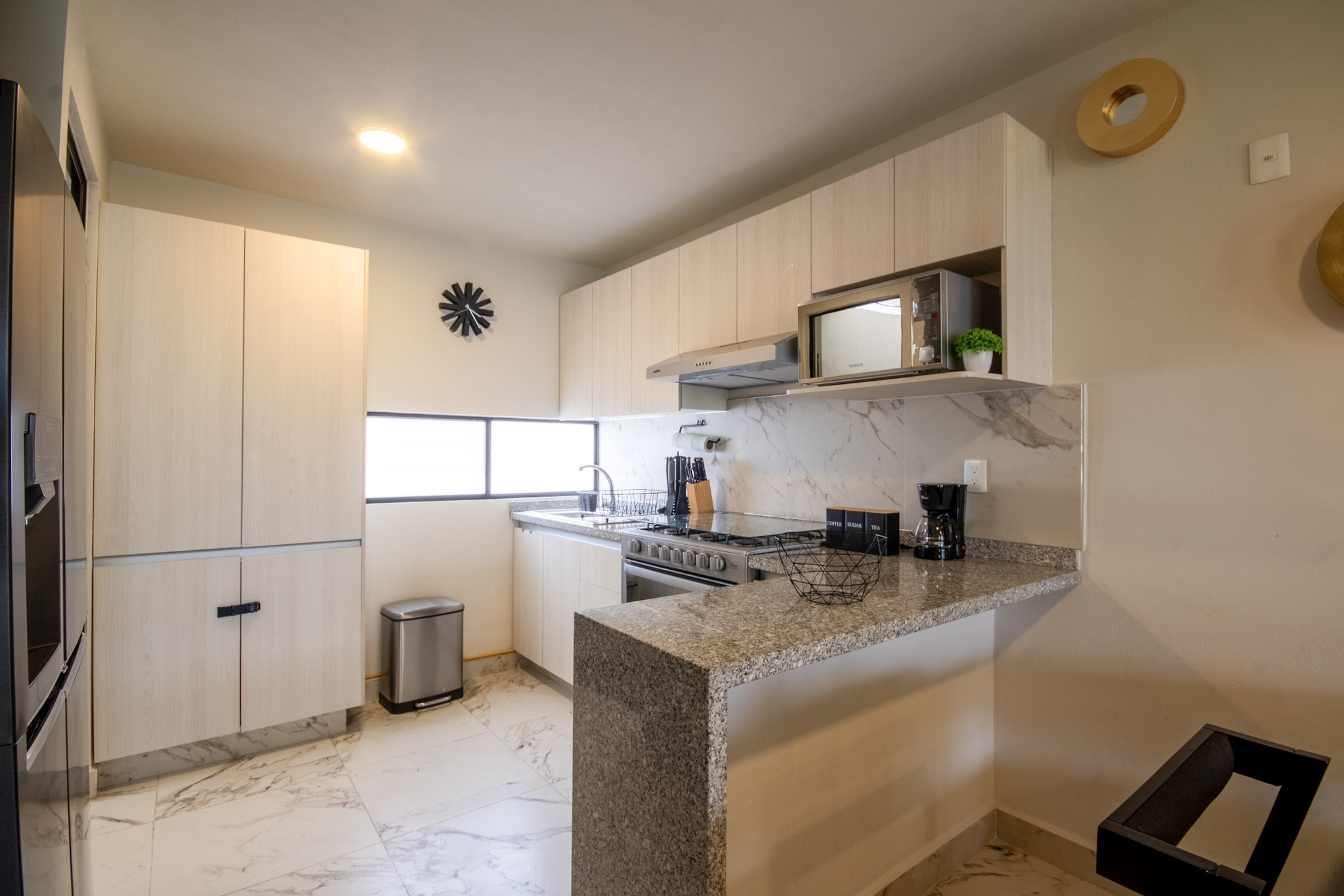 - Cocina Equipada: Microondas, estufa, refrigerador