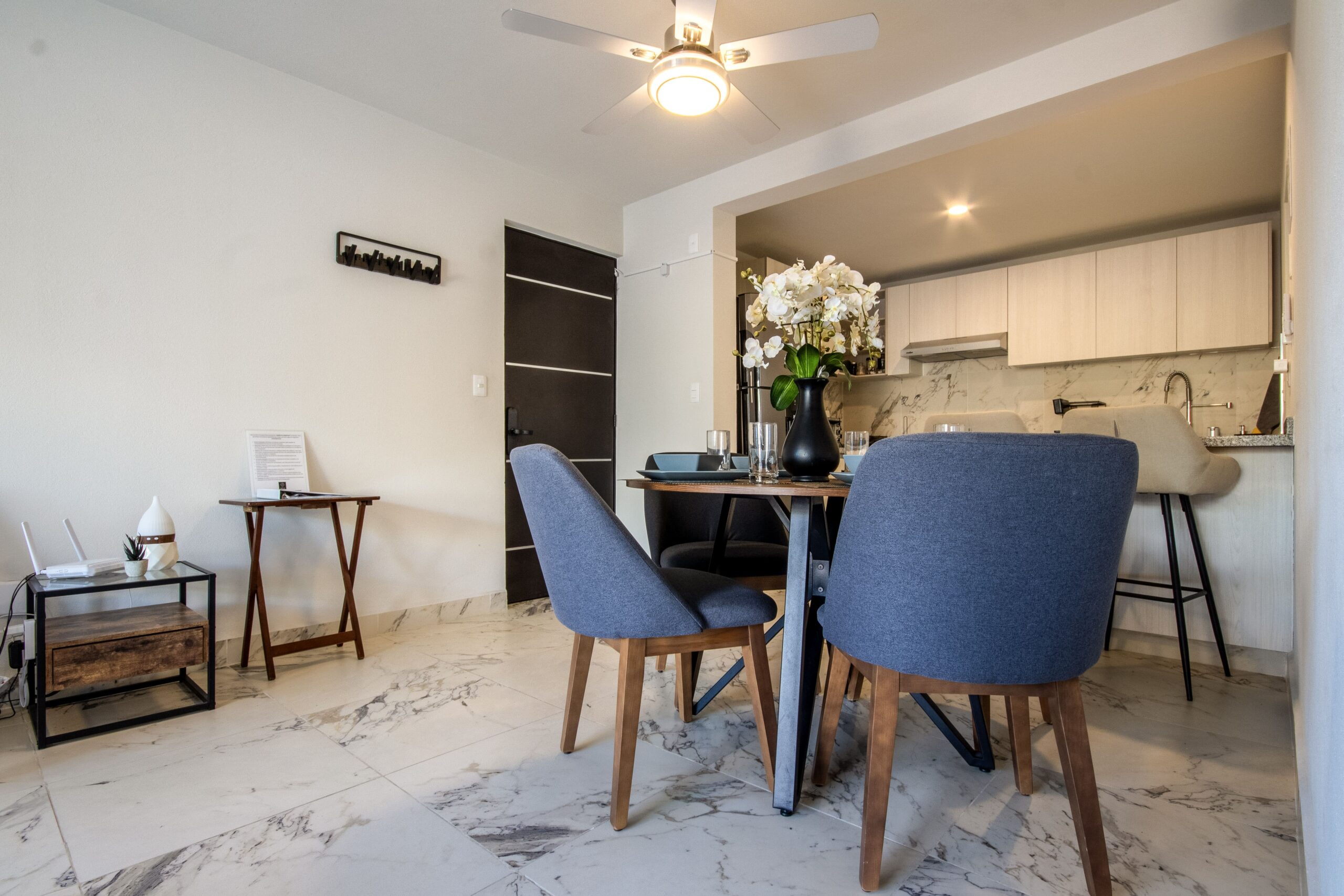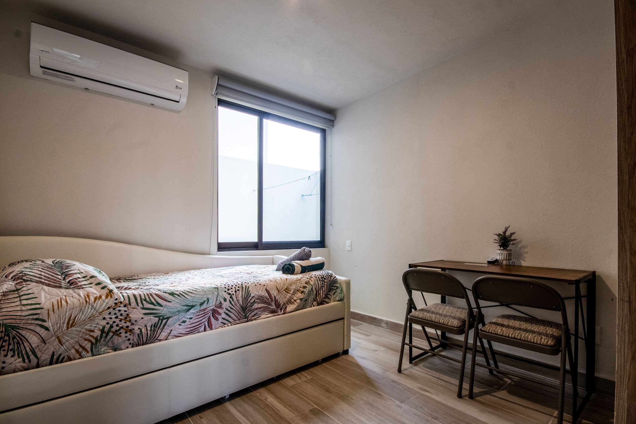 - Sala: Sofá cama, Smart TV, ventilador de techo
